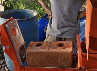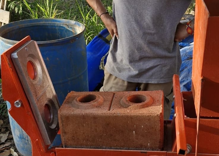 Posteriormente se introduce la mezcla a la maquina donde se compacta la tierra y se moldea en base al block deseado.
