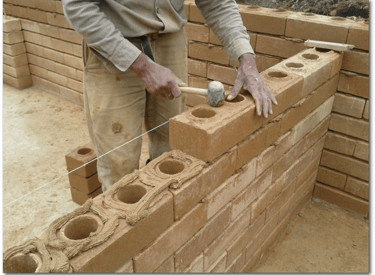 Es un sistema que se pega block con block de manera tipo lego. Dentro de la Bioconstrucción es un sistema constructivo que tiene procesos muy parecidos a los de las construcciones convencionales como las de ladrillo y block hechas de cemento.