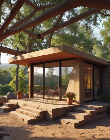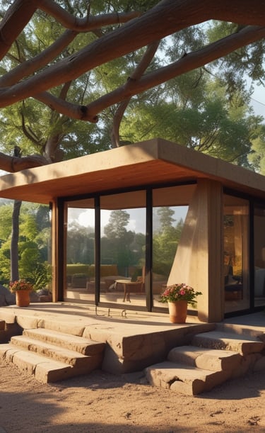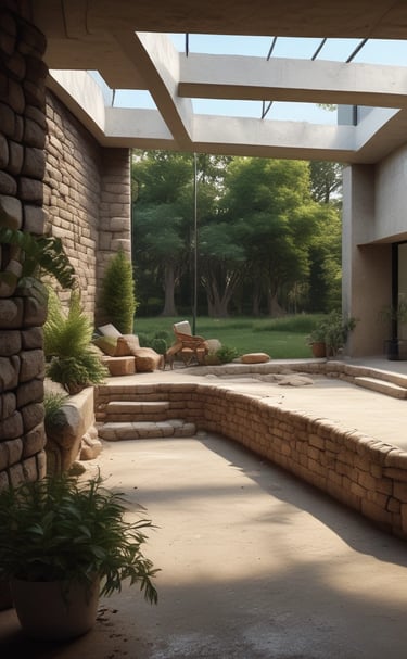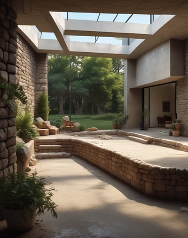 Explora imágenes hechas con IA para la representación de posibles ideas de combinaciones con la técnica Block de Tierra Compactada.