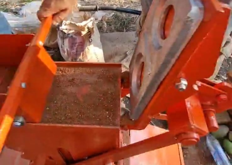 Ya que tenemos nuestra mezcla humedecida, se llena el compartimento de la maquina con esta mezcla para posteriormente porcionar la cantidad de tierra que vamos a utilizar para nuestro block.