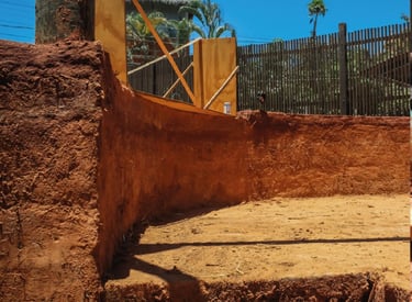 Para comenzar tus muros de Cob tienes que preparar tu mezcla de barro, arena y paja. Posteriormente vas a aplicar tu mezcla en todo el perímetro de desplante de tus muros en un grosor de 40cm y una altura de 10cm.