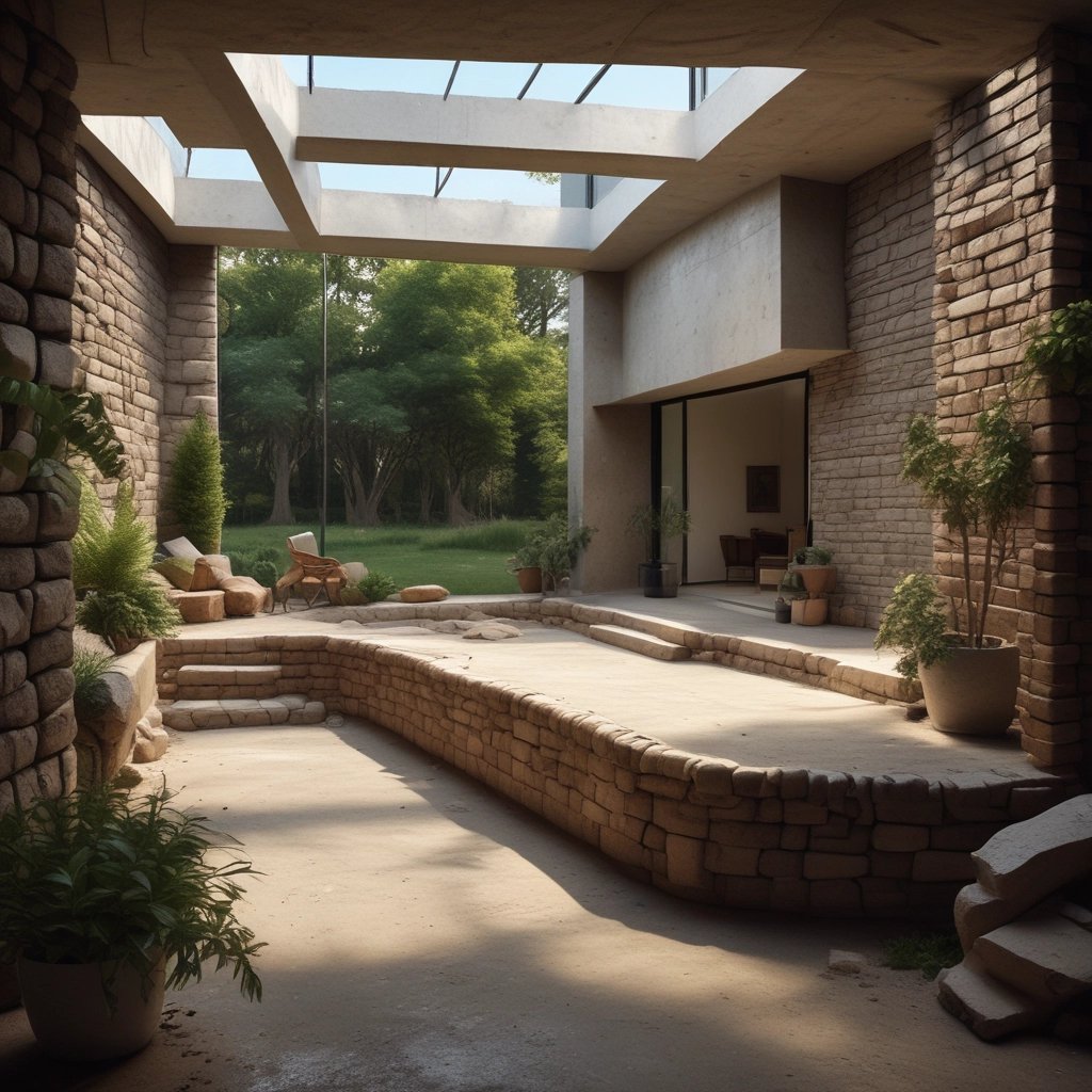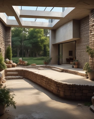 Explora imágenes hechas con IA para la representación de posibles ideas de combinaciones con la técnica Block de Tierra Compactada.