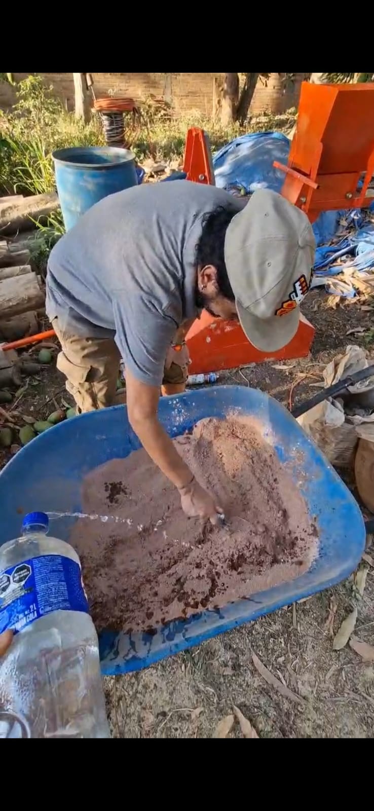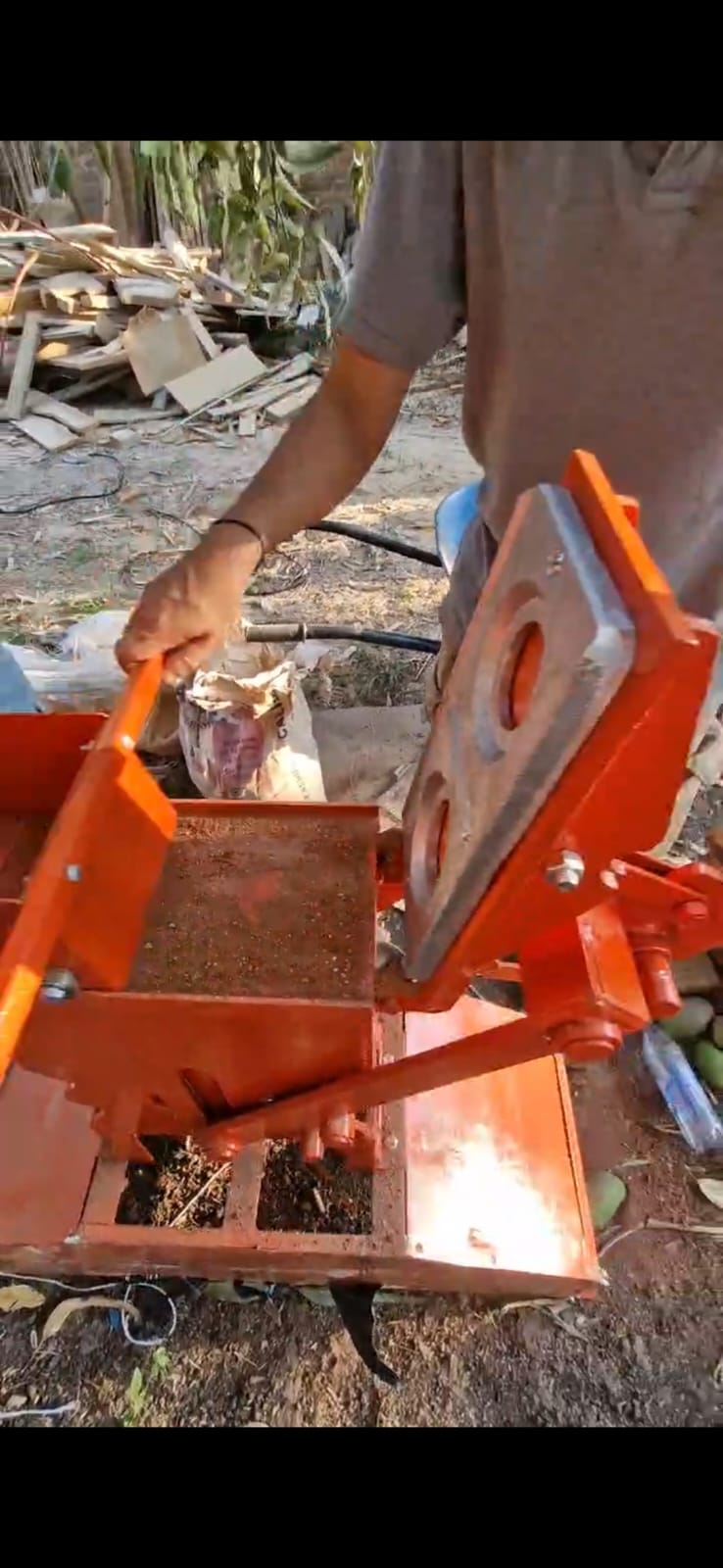 Ya que tenemos nuestra mezcla humedecida, se llena el compartimento de la maquina con esta mezcla para posteriormente porcionar la cantidad de tierra que vamos a utilizar para nuestro block.