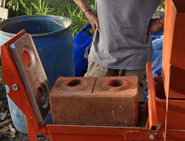 Posteriormente se introduce la mezcla a la maquina donde se compacta la tierra y se moldea en base al block deseado.