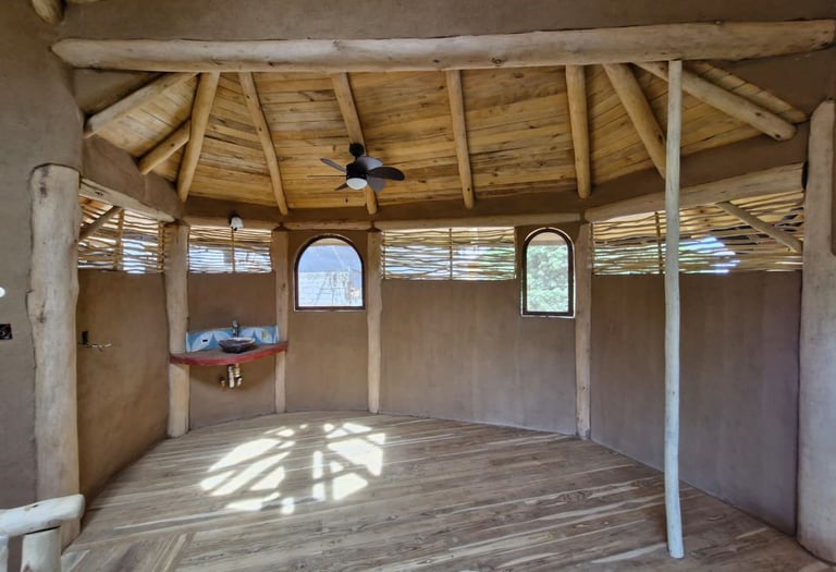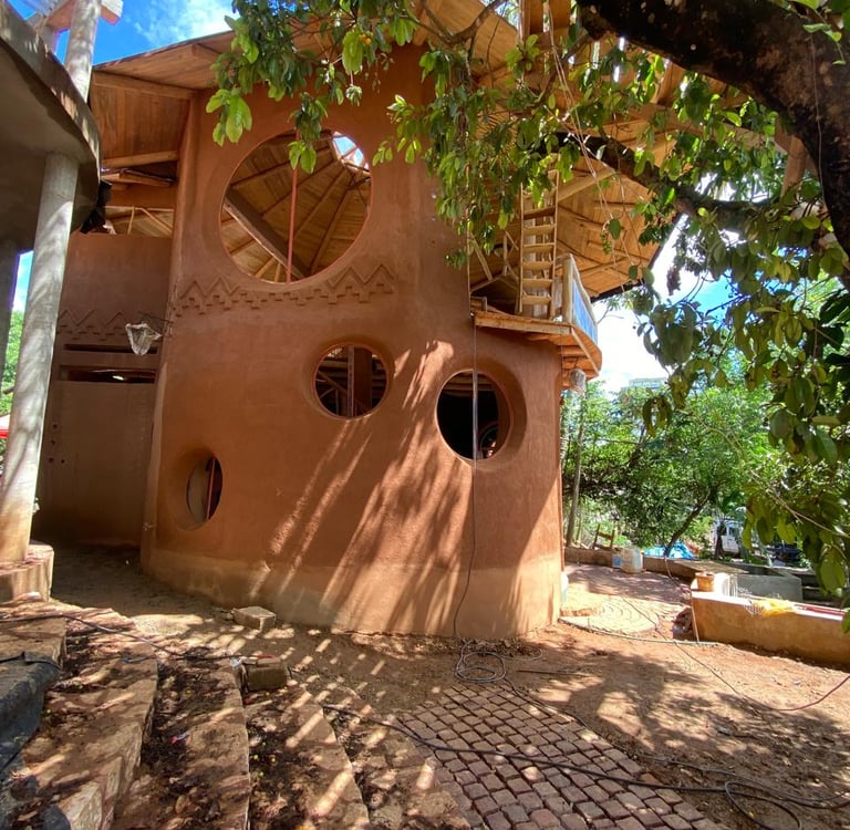 Descubre la belleza de Casa León, una obra única en San Pancho, Nayarit, construida con técnicas tradicionales como el cob y el bajareque.