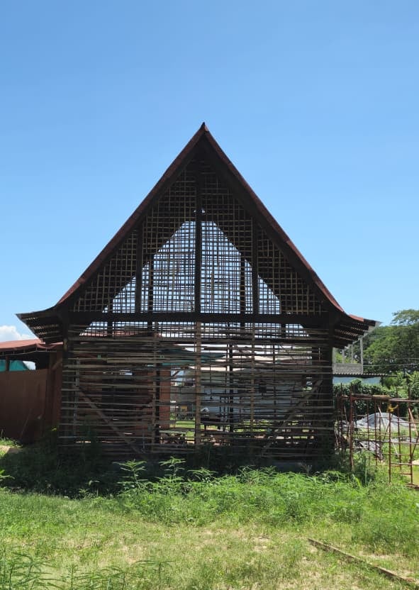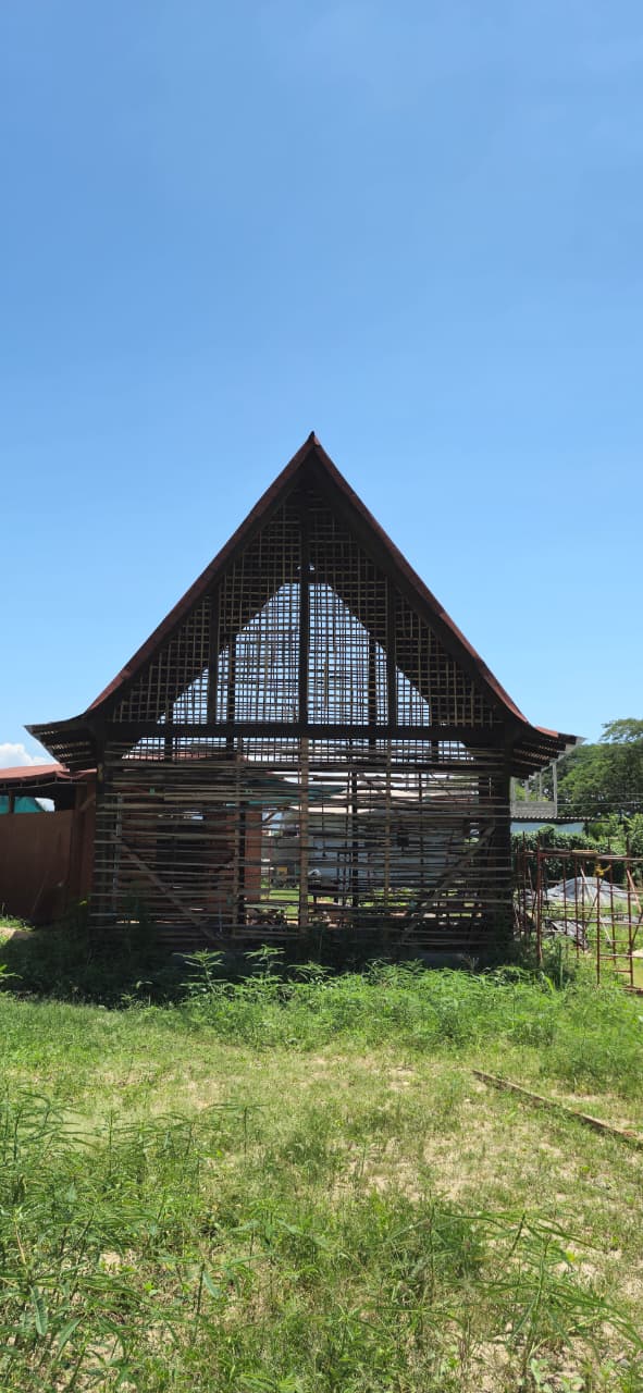 Estructura con varas de madera de Teka para técnica "Quincha Liviana".